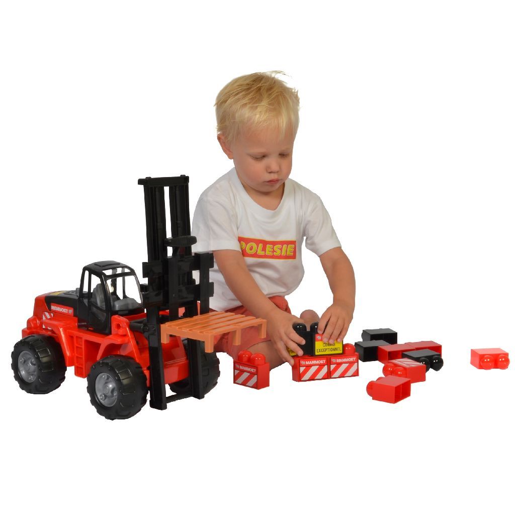 A legkisebbek ezzel a raklapszállító villás targoncával és a hozzá tartozó építő elemekkel játszatják el az építkezés eseményeit. A piros és fekete kockákat felrakhatják a targoncára és elszállíthatják azokat a helyszínre. Mérete: 48.5 x 22 x 22.5 cm. Anyaga: műanyag. Tartalom: Mammoet raklapszállító villástargonca rakománnyal – 45 cm Mérete: 48.5 x 22 x 22.5 cm