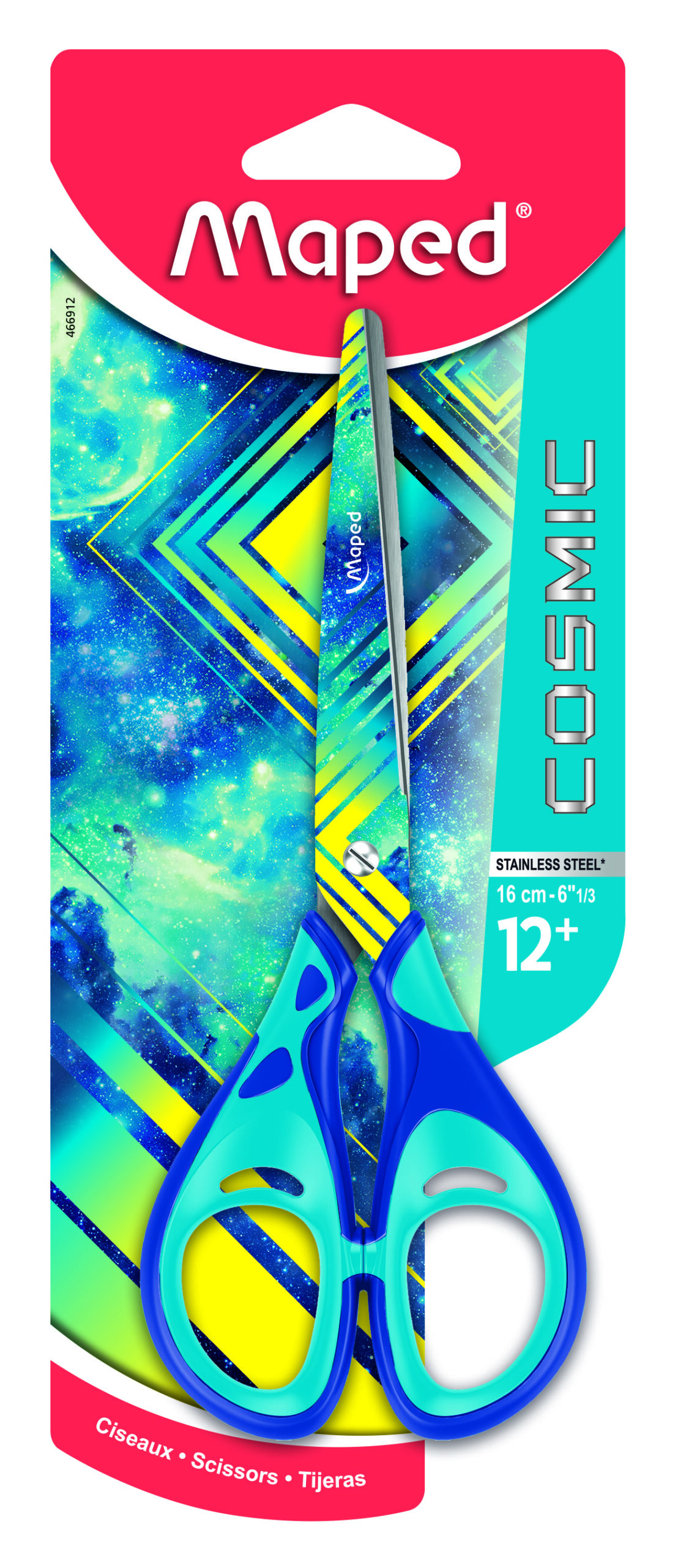 MAPED Cosmic olló ergonomikus kialakítással kifejezettem a kis iskolások számára. Az élei lekerekítettek, nyele gumírozott a kényelmes használat érdekében. Mérete: 16 cm. Színe: rózsaszín.