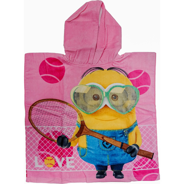 Rózsaszín Minion mintás fürdőponcsó 110-116-os méretben.