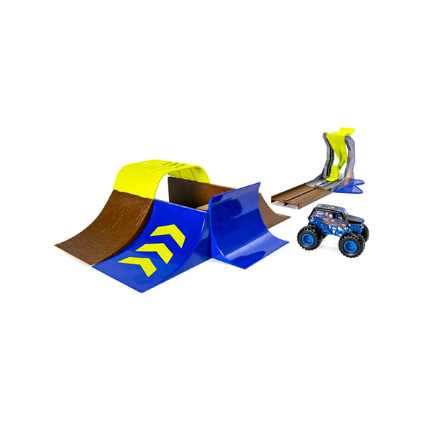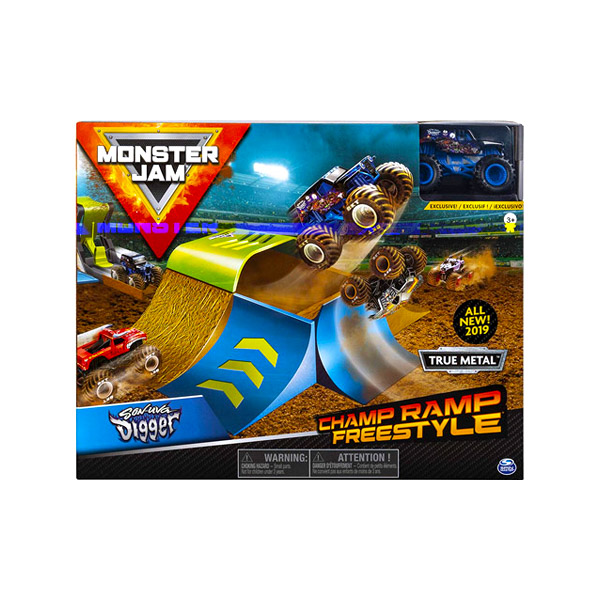 Ugrass, száguldj, hajts végre menő trükköket a saját stílusodban! Indítsd el az autót hogy bemutathass egy őrült mutatványt a rámpákon! A Champ Ramp Freestyle pályaszett izgalmas szórakozást nyújt, ráadásul egy vadiúj Monster Jam kisautó is tartozik hozzá. A kisautó 1:64 méretarányú.
