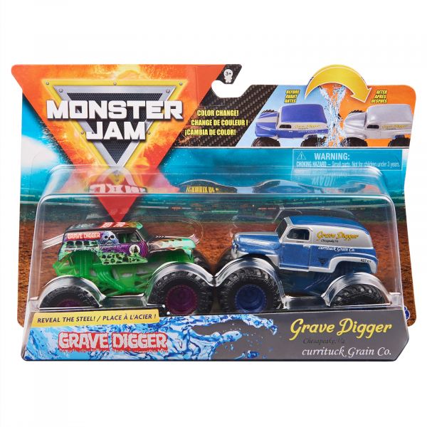 A gyerekek most megismerhetnek két teljesen új, hivatalos, alumíniumból öntött, apró részleteket tartalmazó 1:64 méretarányú Monster Jam autót. Kivételes páros kapott helyet ebben a készletben: klasszikus és meglepően játékos. Ezek a kivételes, apró részletekkel és lenyűgöző grafikákkal teli teherautók igazi BTK gumikon gurulnak, valamint krómozott felnivel és igazi alvázzal rendelkeznek. Kivételesen hűen adják vissza a hatalmas eredeti példányokat. A szörnyautók volánja mögött sofőr ül. A készlet egy speciális gyűjtői plakátot is tartalmaz.