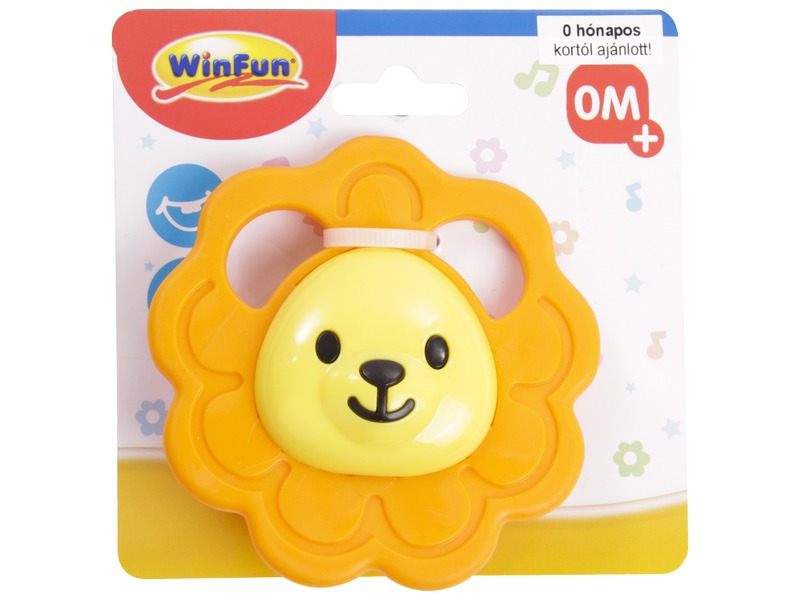 Rágcsáld a mosolygó oroszlánt, hogy csillapodjon a fájdalom! Az Oroszlán műanyag rágóka bébijáték egy narancssárga és citromsárga oroszlán figura, amivel a pici csillapítani tudja a növekedő fogak kellemetlen, bizsergő érzését. Az oroszlánt a pici könnyen meg tudja fogni, és a gallérját harapdálhatja. Az Oroszlán műanyag rágóka bébijáték felakasztható kiságyra, babakocsira is. Méret: 9 cm.