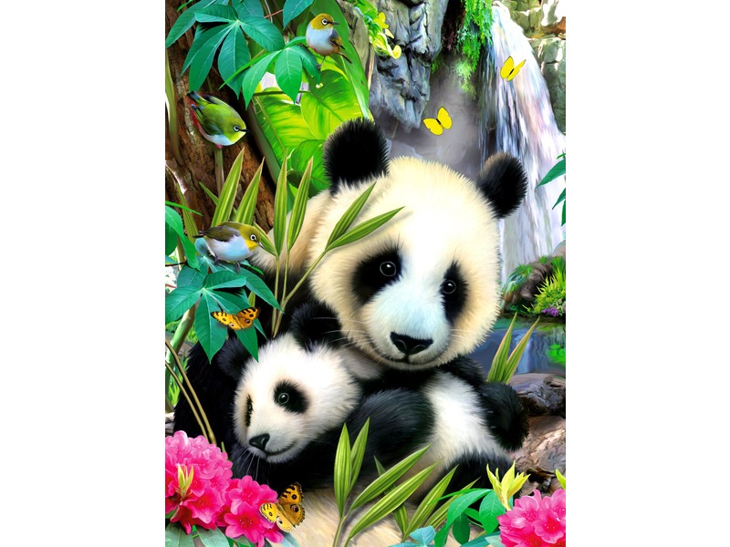 Egy pandamaci és kicsinye, virágok között, puzzle elemekből! A Panda 300 darabos puzzle precízen illeszkedő puzzle darabokból áll, a pandákat élénk színvilágban ábrázolja. A Panda 300 darabos puzzle kirakott méretei: 36 x 49 cm.
