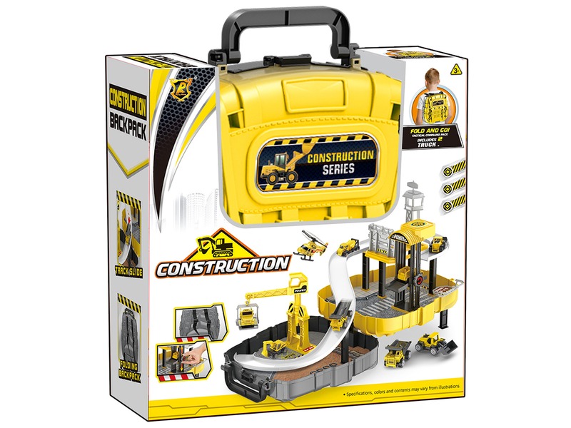 Vidd az építkezésre a munkagépeket! A Parkolóház munkagépekkel táskában egy praktikus hátizsák, amit kinyitva egy emeletes parkolót kapsz! A garázs lifttel, daruval és rámpával is fel van szerelve, a készlet két műanyag munkagépet is tartalmaz, amiket útépítésnél, házépítésnél is hasznosíthatsz. Csukd össze a táskát, és vedd a hátadra, a készletet bárhova magaddal viheted! A Parkolóház munkagépekkel táskában csomagolási méretei: 28 x 10 x 30 cm.