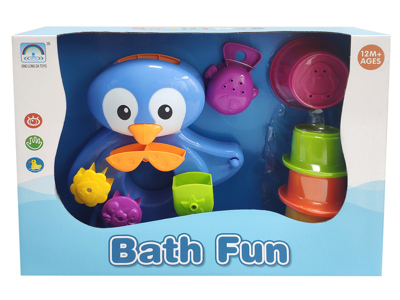 Pancsolj együtt a lubickoló pingvin fürdőjátékkal! A Lubickoló pingvin műanyagból készült, megtapad a csempén vagy a fürdőkád falán is! A vödrökkel öntsd be a fején a vizet, ami vagy a malomkerekekre, vagy a tartályba fog folyni. A pingvin nyakkendője billeg, a pingvin és a vödrök tengeri állatokkal vannak díszítve. A Lubickoló pingvin fürdőjáték segít megérteni az ok-okozati összefüggéseket, fejleszti a kézügyességet és élménnyé teszi a gyerekeknek a fürdést, amit gyakran nem szeretnek. Pingvin méretei: 22 x 8 x 23 cm.