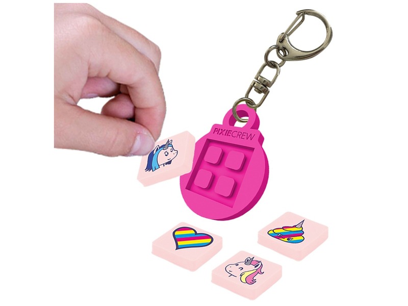 Vidd magaddal a rózsaszín, egyedi kulcstartót! A rózsaszín Pixie kulcstartó egy egyedileg dekorálható dísz, amit a kulcskarikádra tudsz felfűzni. A kulcstartót apró Pixie négyzetekkel tudod változatossá tenni, akár betűket, képeket is ki tudsz rá rakni. A türkiz Pixie kulcstartó tartalmaz egy kis tasak színes négyzetet is. Méretek: 3 x 4 cm.