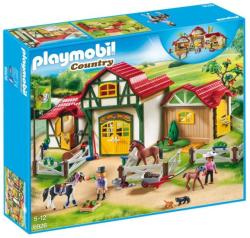 Gondoskodj saját paripáidról lovardádban! A Playmobil Nagy lovarda készletben mindent megtalálsz ahhoz, hogy lovaidat elkényeztethesd! A játék során két lovat és egy kiscsikót ismerhetsz meg, akik gyönyörű pajtájukban éldegélnek. Etesd meg friss répával, majd a nyergüket és kantárukat rátéve lovagold meg pacijaidat saját playmobil figuráiddal! Ha visszatértél a terepről a két istállóval is rendelkező lovardában nyugovóra térhetnek legédesebb állataid. Fedezd fel a készlet további kiegészítőit és élj át felejthetetlen pillanatokat pajtád segítségével. A szépséges lovak mellett cicákat és más kisállatokat is felfedezhetsz vidéki birodalmadban! A játék tökéletes választás lesz az igazi állatbarátok számára. A Playmobil Nagy lovarda készlet tartalmazza a 3 db lovat, az istállókat, a 2 db Playmobil figurát és a további kiegészítőket. A lovarda mérete 69 x 41 x 24 cm, a figurák mérete 7,5 cm.