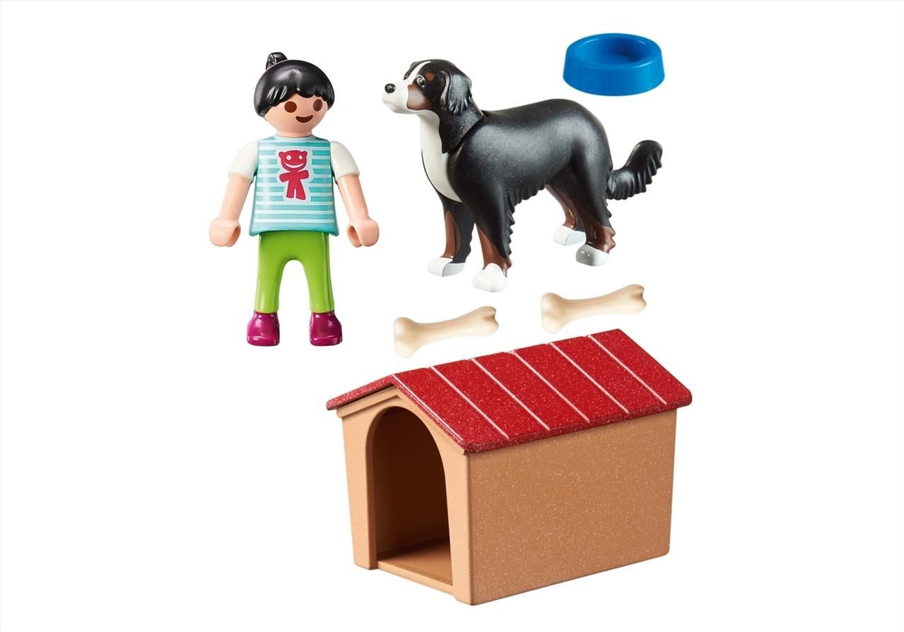 Éld át a végtelen játék örömét berni pásztorkutyáddal! A Playmobil Házőrző kutyaházzal 70136 készlet minden állatbarát számára kellemes kikapcsolódás lesz. Playmobil figurád örökbefogadott egy kedves berni pásztorkutyát! Gondoskodj arról, hogy otthonosan érezze magát új lakhelyén! A készlethez tartozó 2 db Playmobil csonttal, kutyaházzal és etetőtállal kutyás történetek végtelen sorát alkothatod meg! Dobd el a csontot cuki kutyádnak és figyeld meg, milyen okosan visszahozza neked! A nap végeztével pedig helyezd el új barátodat a kutyaházába! Szórakozásból és kreatív ötletekből nem lesz hiány kutyás játékoddal! A Playmobil figurák segítségével megtanulhatod, hogyan kell felelősségteljesen állatot tartani és mik azok, amikre oda kell figyelned kutyatartás esetén. A készlet tartalmaz 1 db Playmobil figurát, berni pásztorkutyát, kutyaházat, 2 db csontot és egy etetőtálat.