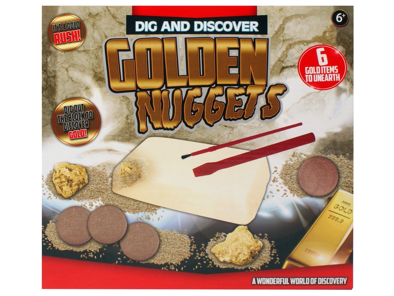 Találd meg az aranyrögöket az agyagtömb mélyén! A régész játék – aranyrögök készletben egy nagy agyagtömböt találsz, amiket a vésővel, kalapáccsal és ecsettel tudsz szétbontani. Kopácsolj, forgácsolj és tisztíts, végül gyönyörű kincsekre fogsz lelni. Az agyagtömb összesen 6 aranykincset tartalmaz, köztük aranyrögöket és régi pénzérméket! A Régész játék – aranyrögök készlet tartalma: 2 db aranyrög, 4 db érme, 1 db agyagtömb, 1 db ecset, 1 db véső, 1 db kalapács. Csomagolás méretei: 28 x 6 x 26 cm.
