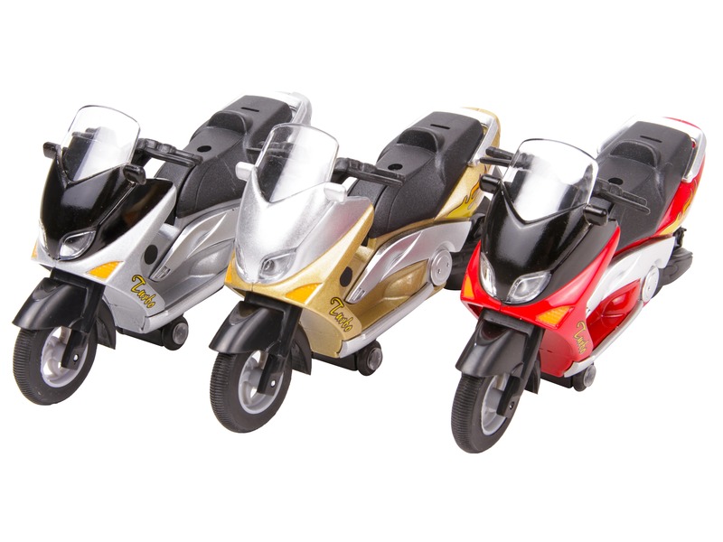 Vagány robógó, fémből és műanyagból! A Robogó fénnyel és hanggal egy kétszemélyes kismotor, élethű megjelenéssel. A robogó hátrahúzós meghajtással készült, és ha lenyomod a nyergét, a fényszórója villogni kezd, miközben hangokat ad ki magából! A Robogó fénnyel és hanggal mérete: 13 cm. A játékok külön kaphatóak. A megjegyzésben kérjük tüntesd fel, hogy melyik változatot szeretnéd!