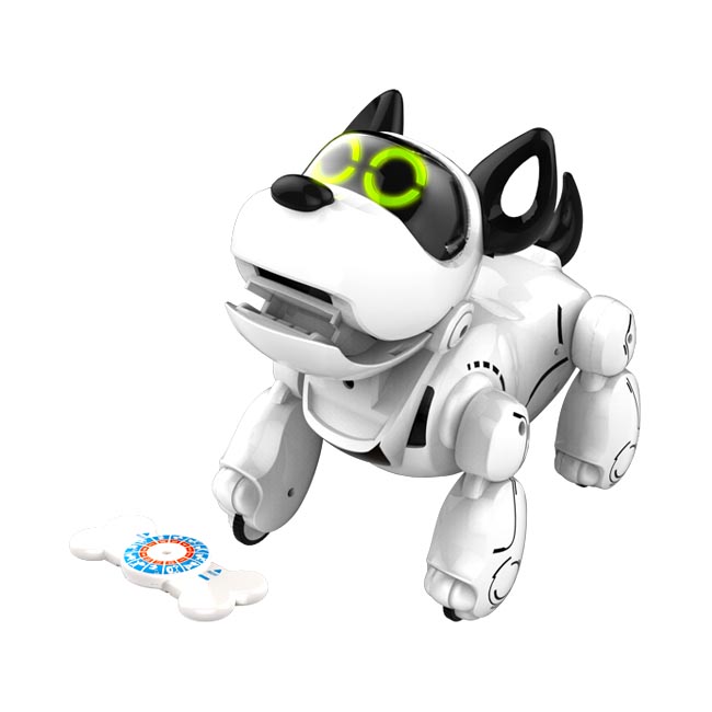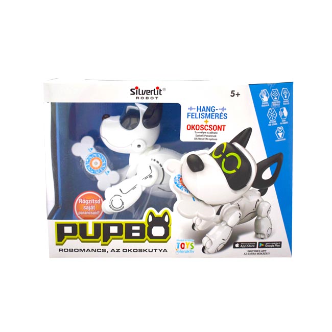 Taníts rengeteg trükköt bármilyen nyelven az interaktív robotkutyának! Robomancs, az okoskutya egy fehér, nagy fülű mozgó interaktív kutyus, akit csomó dologra meg tudsz tanítani. A kutyus érintés érzékelővel, infra érzékelővel készült, felismeri a gazdája hangját, és különböző hanghatásokra is tud reagálni. A kutyus két üzemmódban működik, barátságos üzemmódban 12 alapértelmezett hangparancsra válaszol, hűséges üzemmódban csak a gazdájára hallgat, amit a hangfelismerővel tud megkülönböztetni. A kutyus szemei kétféle színnel is világítanak, minden mozdulatra, érintésre különböző érzelmekkel reagál. Robomancs úgy sétál és fut, ahogy egy valódi kutya, az állapotát egy mobilalkalmazással tudod ellenőrizni, és így tudod oktatni, vagy rögzíteni a saját parancsaidat. A készlet egy csontot is tartalmaz, amit imád rágcsálni! A játék 4 darab AA ceruzaelemmel működik, a csomagolás az elemeket nem tartalmazza. A Robomancs, az okoskutya mérete: 19 cm.