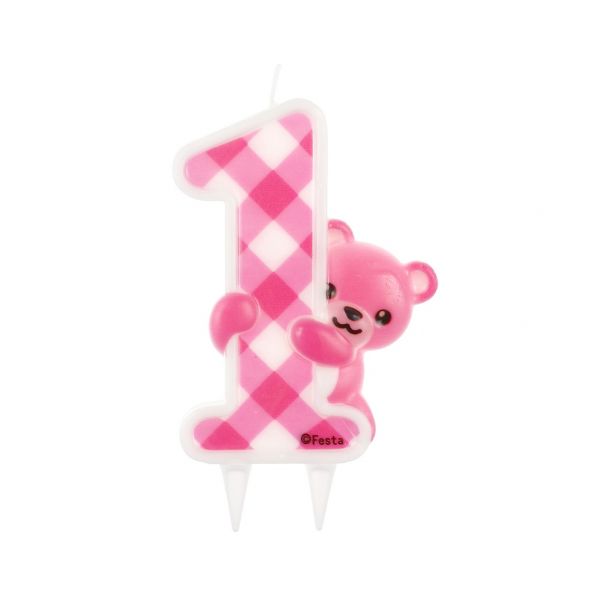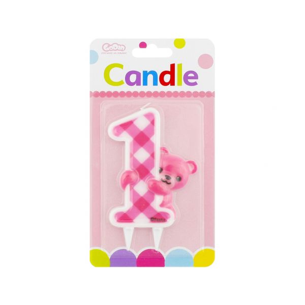 Rózsaszín mackós születésnapi szám gyertya – 1