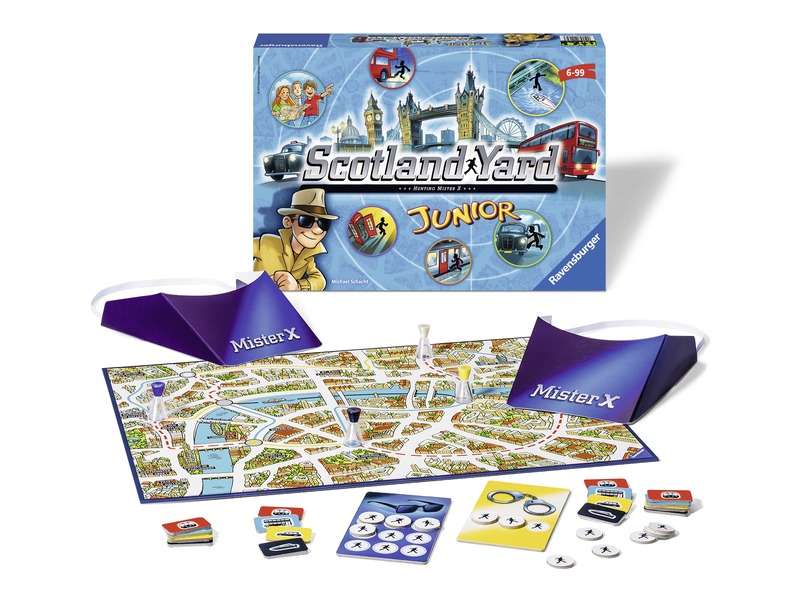 Fogjátok el Mister X-et London utcáin! A Scotland Yard Junior társasjátékban a bűnözőt nyomozók kergetik, de nehéz elfogni, hiszen használja az angol főváros teljes közlekedési hálózatát. Merre fog haladni Mister X? El fogják kapni a nyomozók, vagy el tud menekülni? A Scotland Yard Junior társasjáték egyszerű szabályaival és rövid játékköreivel bevezetés az igazi Scotland Yard társasjátékba! Tartalom: 1 db játéktábla, 4 db bábu, 16 db jegy, 12 db sikerkorong, 2 db lerakótábla, 2 db ellenző Mister X számára, játékleírás