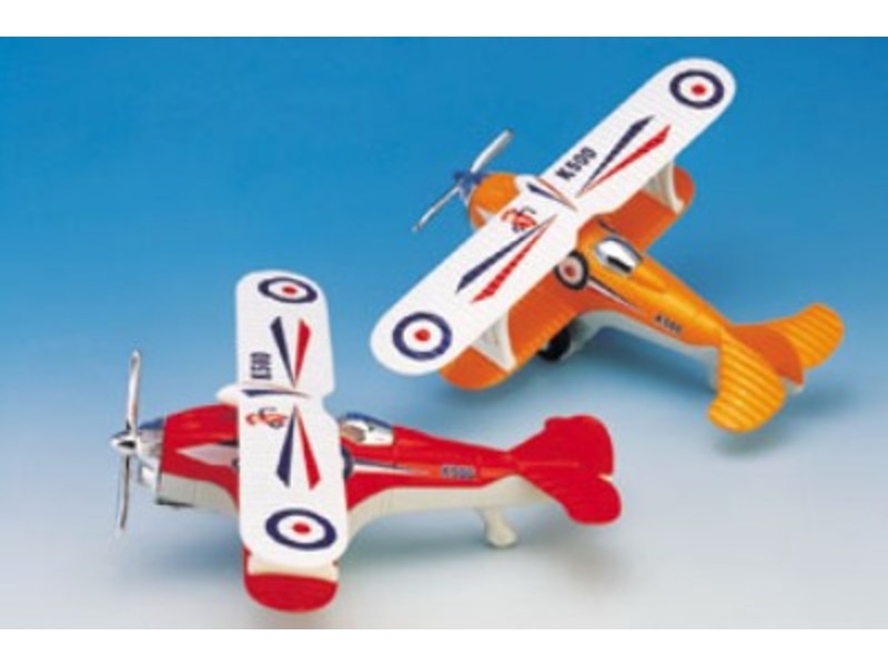 Kisebb duplafedeles repülőgép, forgó propellerrel! A Show Flight fém repülőgép egy kétfedelű, csillogó motorral, bombákkal és pilótafülkével készült repülő, hátrahúzós motorral. A repülőgépet guríthatod, ha hátrahúzod és elengeded, magától fog előre haladni. A Show Flight fém repülőgép mérete: 13 cm. A játékok külön kaphatóak. A megjegyzésben kérjük tüntesd fel, hogy melyik változatot szeretnéd!