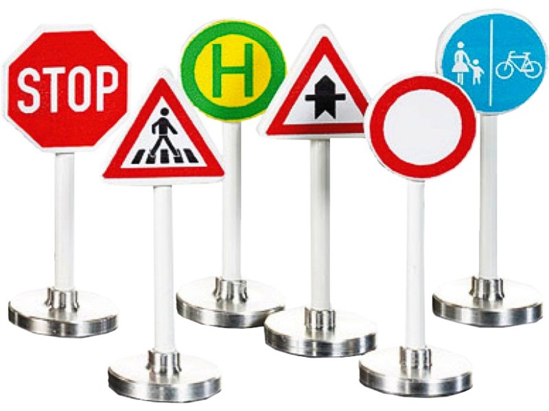 Gyakorold a KRESZ-t a közlekedési táblákkal! Az 1:55 méretaránnyal készült Siku: közlekedési tábla készlet fém talpú műanyag közlekedési táblákat tartalmaz, amikkel meg tudod ismerni az elsőbbségadás fogalmát, és a közlekedési helyzeteket is. A táblákat fel tudod állítani a szőnyegre, a padlóra vagy akár a kedvenc autópályádra is. A Siku: közlekedési tábla készlet 1:55 – 0857 együtt használható SIKU autókkal, játékkészletekkel is. Táblák magassága: 5 cm.