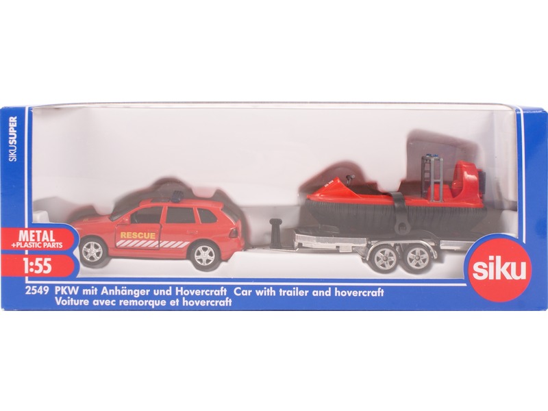 Vidd a partra a légpárnás motorcsónakot! A Siku: Tűzoltó autó légpárnással – 2549 készletben egy 1:55 méretarányú, tűzpiros Porsche Cayenne Turbo fém kisautót, egy utánfutót és egy piros csónakot találsz, amit a tűzoltók használnak. Az autó ajtajai nyithatók, a csónakot le tudod eresztetni a vízre, az utánfutót le tudod kapcsolni a terepjáróról. A játék együtt használható más SIKU készletekkel és járművekkel is. A Siku: Tűzoltó autó légpárnással 1:55 – 2549 méretei: 24 x 6 x 9 cm.