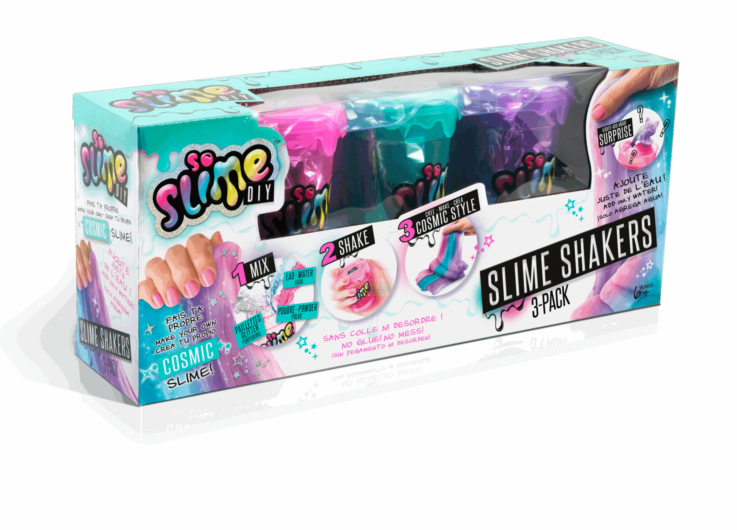 A 3 db-os So Slime készlet ‘Rainbow’ vagy ‘Cosmic’ témákban kapható.