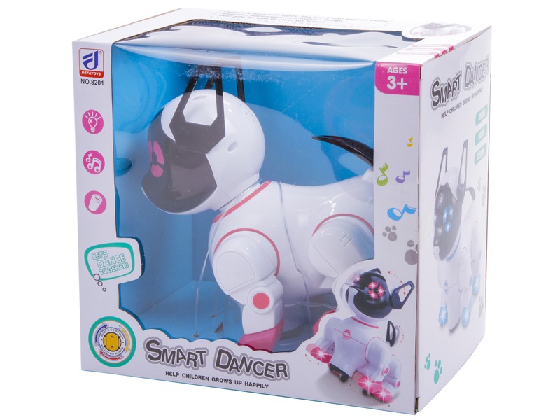 Fogadd örökbe a kis pajkos jószágot, és gondoskodj a mindennapi közös játékról! Az Elemes táncoló zenélő kutya körbe-körbe forog, miközben ütemre mozgatja a lábfejét és a farkát, világít a lába és a szeme, fejét pedig vadul rázza! Igen, ilyen egy igazi bulizós házi eb! A Smart Dancer – Elemes táncoló zenélő kutya működéséről 3 darab AA típusú ceruzaelem gondoskodik (nem tartozék). A terméket több színben forgalmazzuk, válaszd ki a kedvencedet, és írd a megrendelés során a megjegyzésmezőbe. A robot csomagolásának méretei: 24 x 25 x 15 cm. A játékot 3 éves kortól ajánljuk.