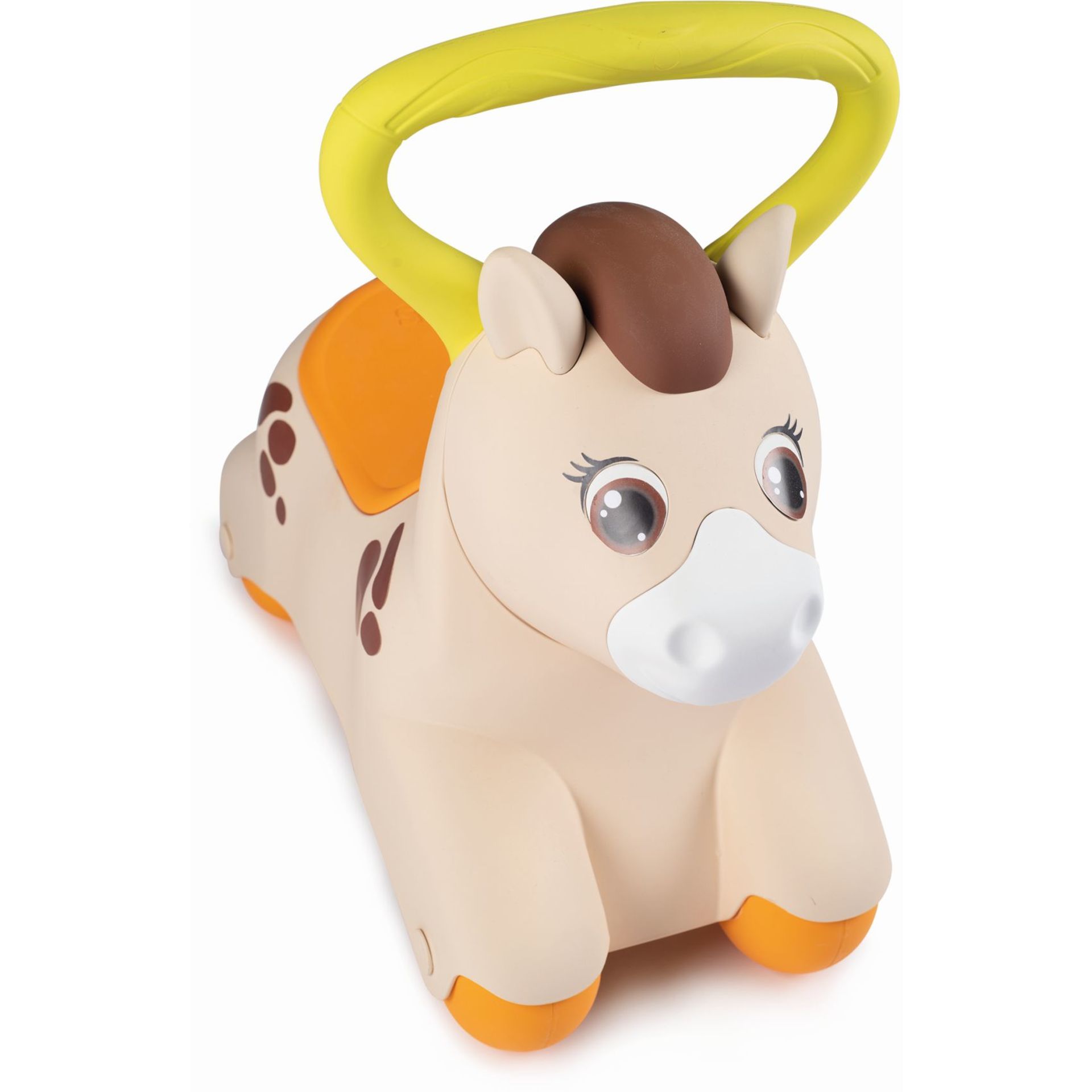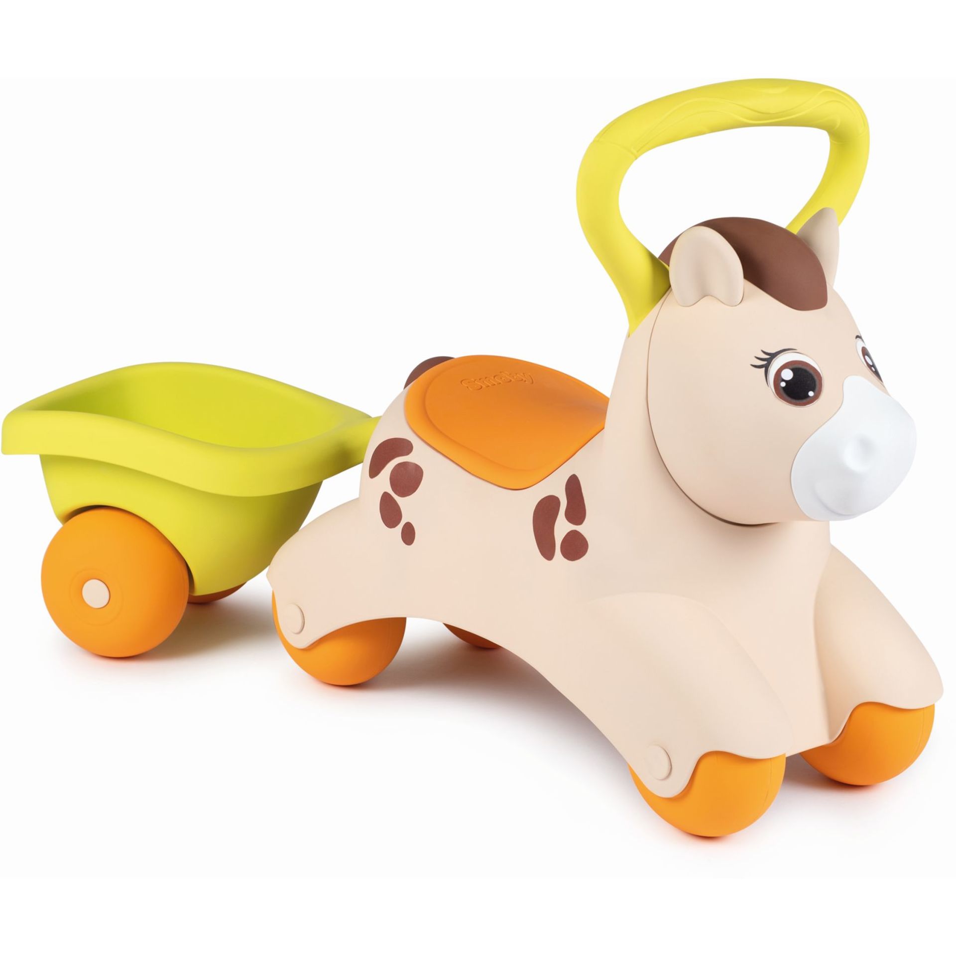 Ez a kedves, póni alakú bébijárgány már az első lépések előtt segíthet. Nagyon biztonságos, szinte zárt kerekei vannak, melyek szélesek, jól gurulnak. Nagy, erős kapaszkodóját könnyen és bárhol megragadják a kicsik, a felállásban is segíthet. A kis utánfutó tartozékba akár a játékaikat is beletehetik. Mérete 70 x 23 x 43 cm. Tartalom: Póni alakú bébijárgány, utánfutó