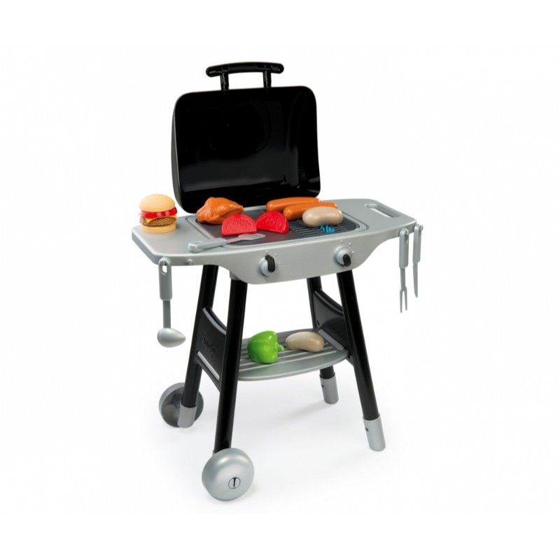 A Smoby Barbecue játék kerti grillsütővel (312001) a jó idő beköszöntével indulhat a grillszezon! A kerti sütögetés igazán kellemes hangulata a családi, baráti összejöveteleket még vidámabbá teszi. Ízletes saslik, szaftos sült kolbász vagy akár hamburger készül, mindenki talál kedvére valót. A játék grillsütő teteje lecsukható miközben odabent sülnek az ízletes grillhúsok, kerekeinek köszönhetően pedig hordozható, ha elered az eső, a gyerekszobában lehet folytatni a sütögetést.