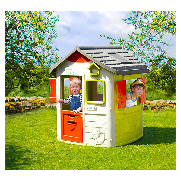 A Smoby: Neo Jura Lodge kerti játékház birodalomban szabadon játszhatnak a gyerkőcök akár egyedül, akár a barátaikkal! Bevihetik kedvenc játékaikat és élvezd az árnyékot, amit a szuper kerti játékház biztosít számukra! A legjobb szórakozás ebben a kedves kis házikóban játszani! A házikó bővíthető és fejleszthető: hozzá adható egy komplett nyári konyha, piknik asztal, elülső kert, kémény, virágosládák, teljes bejárati ajtó és ajtócsengő. A kiegészítők külön kaphatók. Az alapfelszerelésbe tartoznak a kinyitható ablakok, valamint a levélbedobó nyílással rendelkező fél ajtók elől és hátul. A Kerti játékház méretei: 123 x 115 x 132 cm.Csomag súlya 20 kg