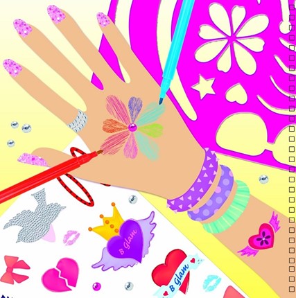 Készíts frizurát, sminket, körmöket, használd a stencilt és a haj, tetkó, ékszer és kiegészítők matricáit. Kövesd a színes mintákat vagy kreálj teljesen egyedi megjelenést. Tartalmaz: 24 oldalnyi modellt, 2 műanyag stencilt, 4 matrica ívet és 4 oldal színes mintát útmutatásként. A könyv méretei: 250×250 mm. 36 hónapos kor alatt nem ajánlott.