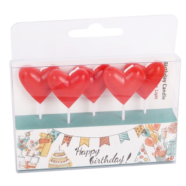 Szív formájú, piros születésnapi gyertya szett, 5 darabos
