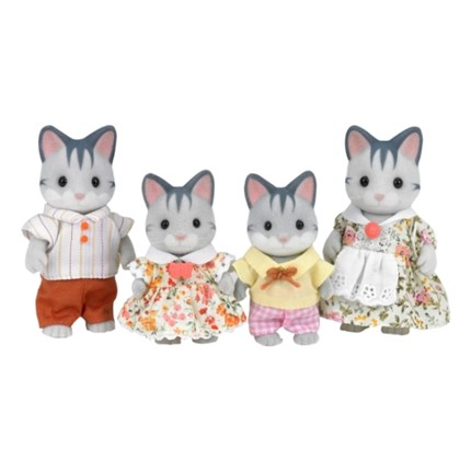 A szürke cica szülőknek egy kislány és egy kisfiú gyereke van. A kislány cica anyukájához hasonló virág mintás ruhát visel, mert nagyon szeretne hasonlítani rá. A kisfiú pedig az apukájával közös programokat élvezi igazán. A játék 3 éves kortól ajánlott.