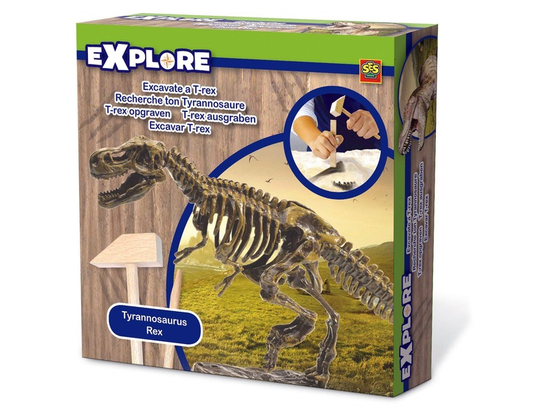 Szabadítsd ki a gipszből a Tyrannosaurus Rex csontvázát! A SES T-Rex dinoszaurusz bányász készletben lévő nagy gipsztömbből különböző csontdarabokat tudsz előbányászni, amikből a legfélelmetesebb dínó, a Tyrannosaurus Rex csontvázát lehet összerakni. A gipszet egy fa vésővel és kalapáccsal tudod megbontani, és apróra törni, ha fogsz egy ecsetet, akkor az utolsó szem gipszet is le tudod pucolni a csontokról. Rakd össze a csontvázat és tanulmányozd, hogyan is nézett ki a legnagyobb dinoszaurusz! A T-Rex dinoszaurusz bányász készlet csomagolási méretei: 20 x 4 x 20 cm.