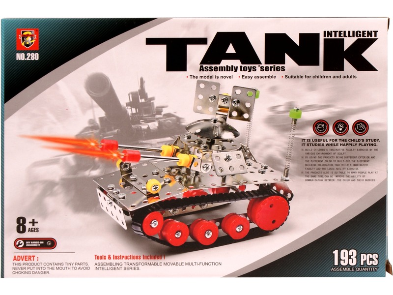 Szerelj össze egy duplacsövű, lánctalpas tankot! A Tank 193 darabos fém építőjáték fémből és műanyagból készült alkatrészeket, tengelyeket, rengeteg csavart és anyát tartalmaz, amikből egy légvédelmi, radarral felszerelt harckocsit tudsz összeszerelni. Erősítsd fel a harckocsira az antennákat, az ágyútornyot és a lánctalpakat is, miközben rakod össze a tankot, fejlődik a kézügyességed és a szerelési érzéked is! A Tank 193 darabos fém építőjáték készlet csomagolási méretei: 34 x 5 x 24 cm.