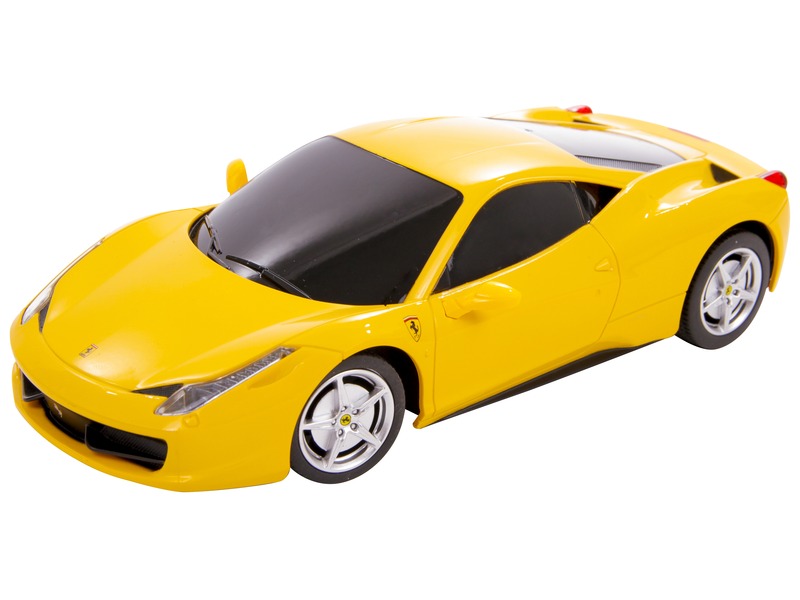 Távirányítós Ferrari 458 Italia autómodell, 1:24 méretaránnyal, többféle színben. A Ferrari 458 Italia sportautó műanyag karosszériás, nagyon szép kidolgozású, szinte megszólalásig hasonlít az eredeti Ferrari 458 Italia autóra. A távirányítós autó 13-16 km/h maximális sebességre képes, a távirányító hatósugara 10 m. A távirányító 2 db AA ceruzaelemmel, a Ferrari 458 Italia autó 3 db AA ceruzaelemmel működik, a csomagolás az elemeket nem tartalmazza. Autó mérete: kb. 20 cm. A játékok külön kaphatóak. A megjegyzésben kérjük tüntesd fel, hogy melyik változatot szeretnéd!