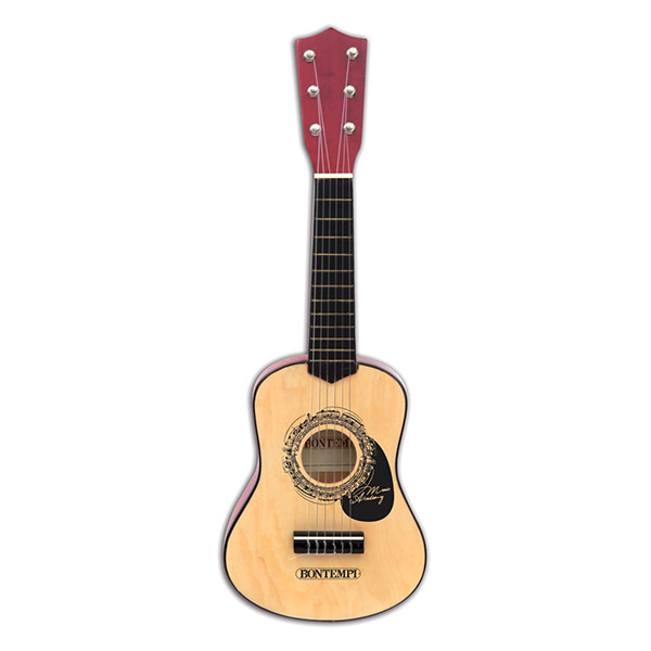 Bontempi 6 húros, klasszikus fa gitár. A gitár hangolható, hangzása valóságos. A csomagolás tartalmaz egy hangjegyfüzetet és egy pengetőt is. Csomagolási méretek: 56 x 22 x 7 cm.