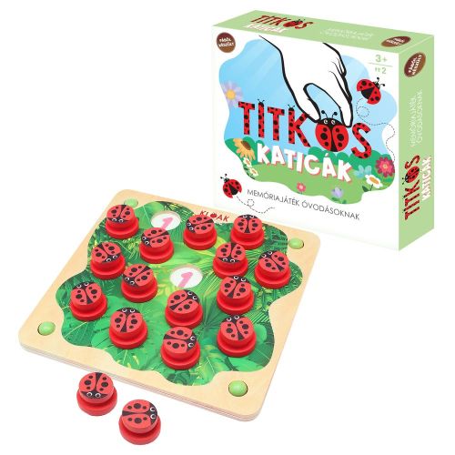 A játék célja, hogy a gyerekek megtalálják a páros katicákat a letakart fa lapkák alatt, miközben megjegyzik azok helyét és mintáját. A Titkos katicák társas egyszerre kínál izgalmas kihívást és fejlesztő élményt: a memóriajáték klasszikus mechanikája segíti a vizuális emlékezet és a koncentráció fejlődését, miközben a fa elemek kézbe vehetősége és természetes anyaga kellemes tapintású játékélményt nyújt.