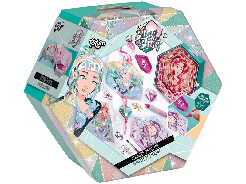 Készíts fantasztikus gyémántokat és fesd meg őket kedved szerint! A Totum Bling Bling – Gyémánt festés készletet minden, csillogásra és alkotásra vágyó hercegnő imádni fogja. Dekoráld ki a képeket a csillámok segítségével és illeszd be őket a kristályos keretbe! A pontos leírásnak köszönhetően nem kell attól tartanod, hogy elakadnál a kreatív munkában. Ragasztózd be a különböző hölgyeket ábrázoló képeket, majd szórd rá a megfelelő csillámport! Miután vártál egy kis ideig, hogy a ragasztó megkössön, rázd le a felesleges csillámport, majd illeszd a helyére a képet. Ha elismételted a folyamatot mind a négyszer fűzd össze a képeket és el is készült fantasztikus gyémánt kollekciód! A játék tökéletes akár egy csajos buli alkalmával is. A készlet tartalmazza a gyémántokat, ragasztókat, csillámporokat és mindent, ami a gyémántfestéshez szükséges lehet.