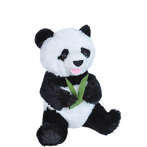 Prémium minőségű, Wild Republic márkájú, 25 cm-es ülő plüss panda bambusszal, műanyag szemekkel.