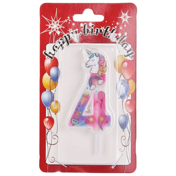 Ezzel az unikornis mintájú, színes számgyertyával még varázslatosabb lesz a születésnapi torta! Használata egyszerű, a gyertyák pálcikákon vannak, így könnyedén beszúrhatók a tortába. A csomag a 4-es számot tartalmazza.