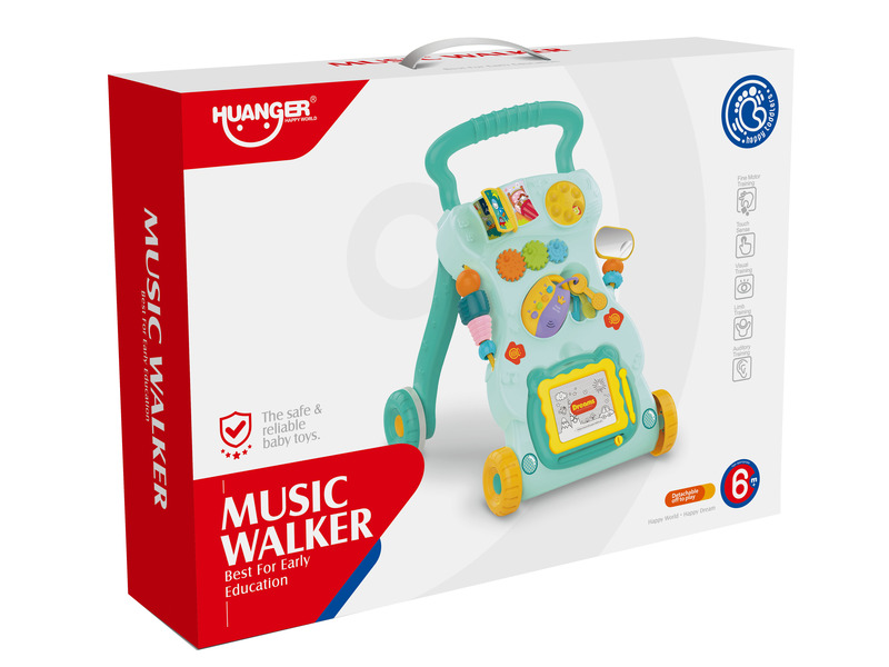 Élénk színeivel és számos funkciójával hasznos időtöltés minden babának. Fényt és hangot adó bébijáték tükörrel, kivehető kocsikulccsal és rajztáblával, sok apró tekergethető, forgatható, nyomkodható, lapozgatható, nézegethető elemmel, ami fejleszti a finommotorikát, vizuális memóriát. A keretre támaszkodva a baba biztonsággal gyakorolhatja újonnan megszerzett tudását is, a járást.